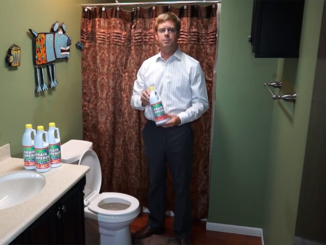 Unclogging a toilet with Floweasy Drain Opener